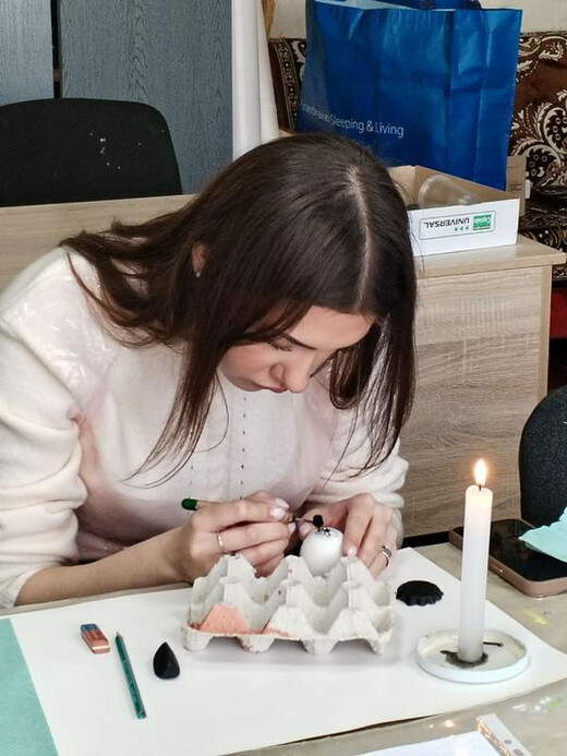 Майстерклас з писанкарства провела керівниця студії народної ляльки та образотворчого мистецтва ОЦНТ Аліна Каплюк. А мальованки наші гості створювали разом із чернігівською майстринею Тетяною Стадниченко, яку ми запросили до співпраці.