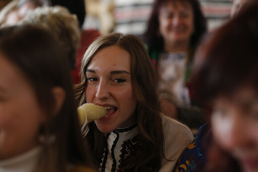 Учасниці клубу за інтересами «Господарочка» Синявського будинку культури на чолі з найдосвідченішою господинею Зінаїдою Рубан провели презентацію елемента нематеріальної культурної спадщини, внесеного до обласного переліку НКС у 2025 році, - синявських крохмальних вареників. Вправні хазяєчки із Синявки розповіли про історію свого села, згадали родинні традиції, заспівали українських народних пісень, а головне – продемонстрували майстерклас із приготування крохмальних вареників. Кожен охочий міг долучитися, бо ліпити варенички найкраще та найшвидше саме гуртом. І, звичайно, після цього всі дружно поласували цією смакотою.