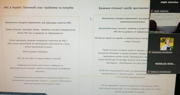 19 січня на платформі Zoom відбулося обговорення майбутнього Закону України «Про охорону нематеріальної культурної спадщини».