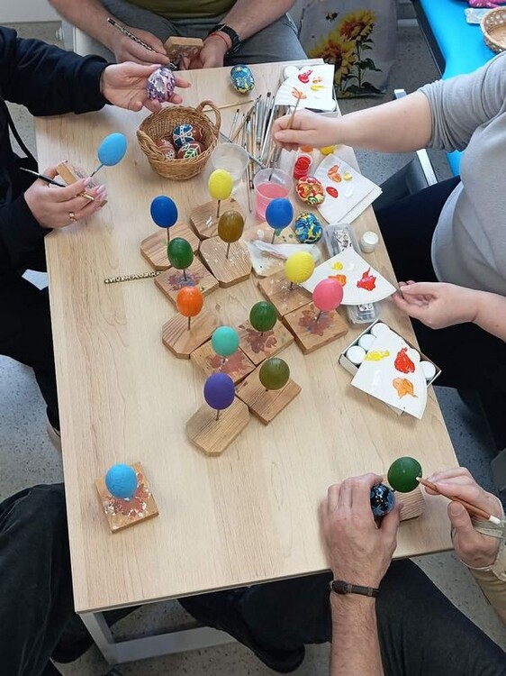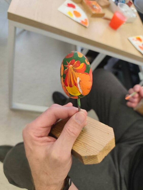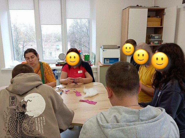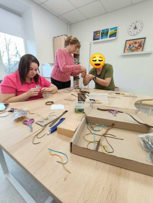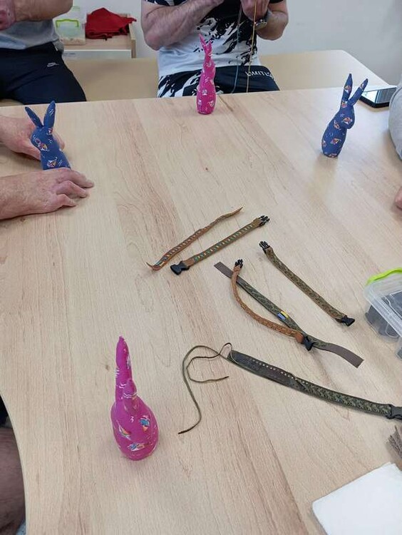 У реабілітаційному центрі RECOVERY побували майстрині ОЦНТ Антоніна Пустовойт і Наталія Войстрикова. З пані Антоніною шили великодніх зайчиків, з пані Наталією плели браслетики зі шкіри. А чернігівська майстриня Тетяна Стадниченко, запрошена до співпраці, провела майстерклас з мальованки.