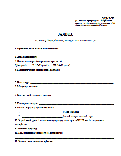 Для участі у Конкурсі необхідно до 4 лютого 2026 року надіслати заявку та копії документів (свідоцтво про народження або паспорт) на електронну адресу: